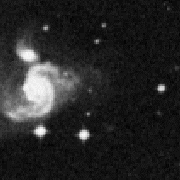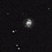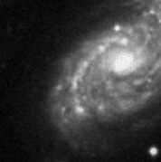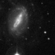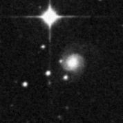 tip of the bright nucleus of NGC 6185 (Sa, z=0.034).